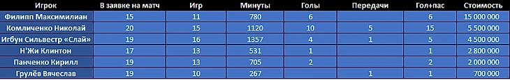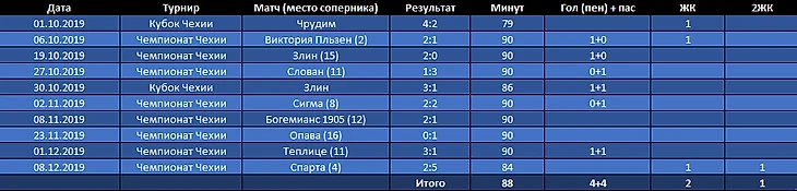 Все матчи российский нападающий выходил на поле в стартовом составе. Результативность, даже с погрешностью на Чемпионат Чехии, вдохновляет. Николай с тремя другими игроками делил первенство среди бомбардиров, однако, он сыграл меньше матчей, чем его соперники (15 против 17, 20 и 20).