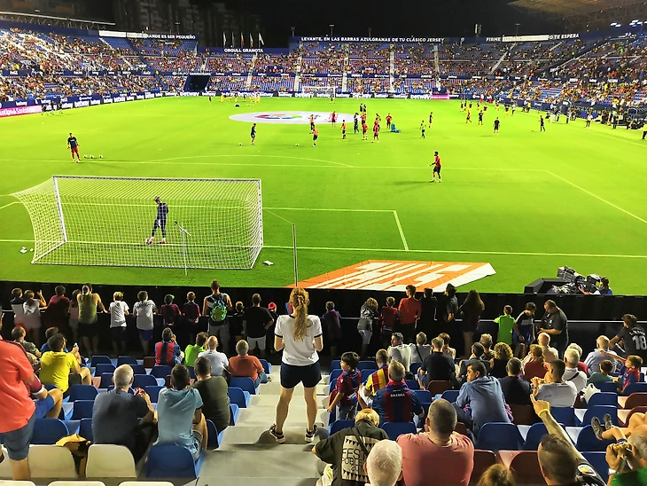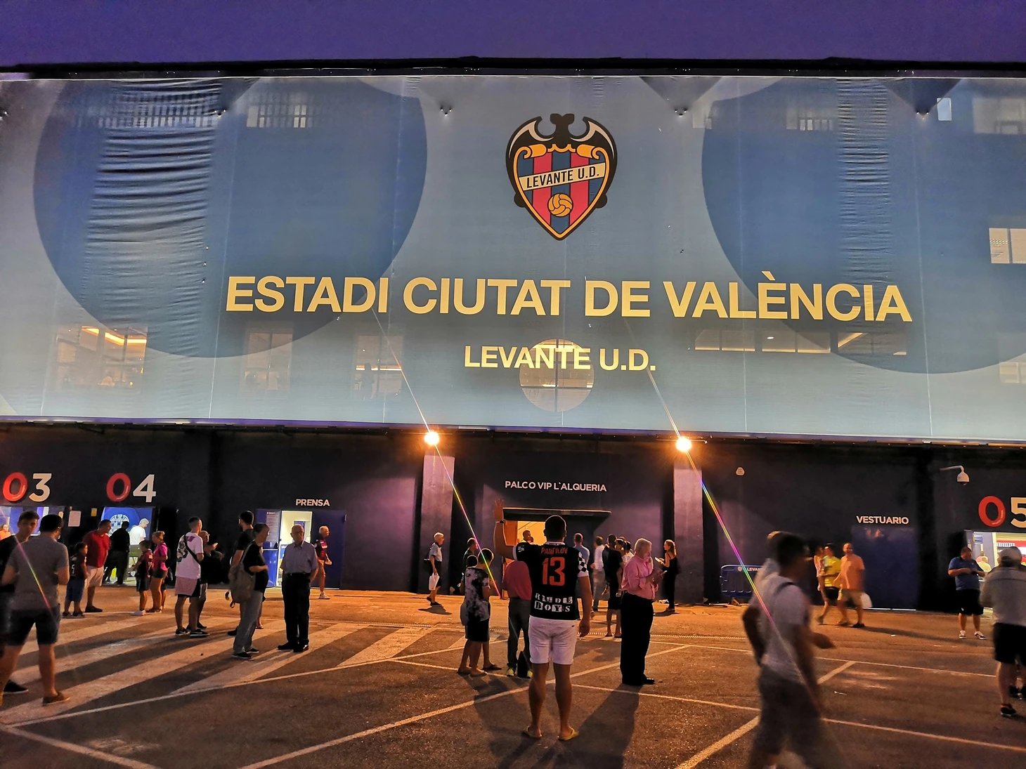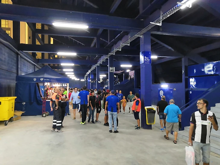 Маленький уютный семейный стадиончик, все всех знают, будто ходят на одни и те же места лет по 10. Очень испанский подход к делу в плане билетов - они появились в продаже только за два дня до матча и только онлайн, а затем через день выяснилось, что у них проблемы с сайтом и билеты невозможно купить, пришлось ехать на стадион.. Оффлайн их можно приобрести в двух местах - на стадионе и в официальном магазине в центре если что. Я посетил, можно сказать, исторический матч. В этом районе Валенсии запрещено проводить матчи и концерты по пятницам, а по расписанию Ла Лиги игру поставили именно на пятницу, был суд, и город обязали разрешить проведение матча. Билеты дороже чем на Месталью. Можно проносить свою еду и воду. Фанатский сектор домашней команды находится на угловом секторе, оригинально.⠀