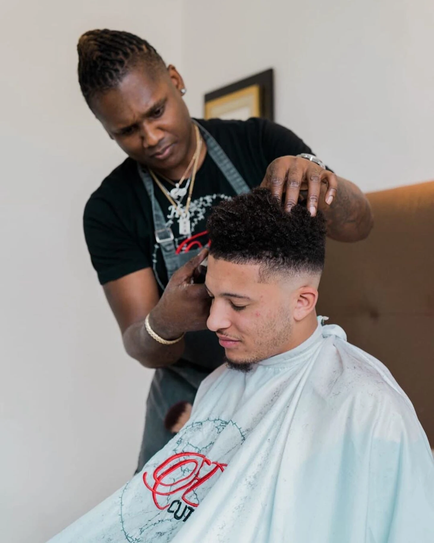 Дальше Усейн Болт увидел стрижку Рахима Стерлинга и тегнул барбера в сторис с просьбой сделать ему такую же. Барбером оказался Эдвардс. Так началось их сотрудничество и дружба. Теперь он личный барбер легендарного бегуна.