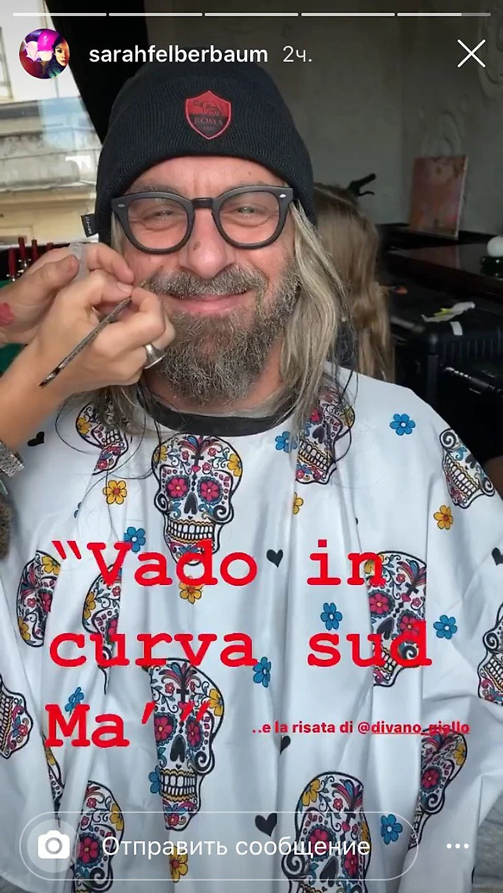 «Вот что происходит, когда твой муж решает проникнуть на Curva Sud, чтобы осуществить мечту и увидеть дерби, – написала жена Даниэле Сара Фельбербаум. – Мы потратили целый день, часы макияжа, но он был счастлив как ребенок. Я люблю тебя».