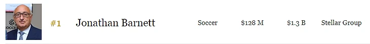 Джонатан Барнет впервые возглавил рейтинг и сдвинул с него короля Скота Бароса (хотя конечно это все условно, но об этом ниже). Барнет владеет компанией Stellar Group , клиентами которой являются такие футболисты как Гарет Бейл (Реал Мадрид), Сауль (Атлетико Мадрид), Макси Гомез(Валенсия), Джордан Пикфорд (Эвертон),Жоао Феликс(Атлетико Мадрид). Основной доход и лидерство агенту, принесли как раз сделки с футболистами, а всего в агентстве числится более 200 игроков из различных видов спорта. Барнета считают основным агентом всех значимых игроков в крикет, именно его ставят во главе тех, кто популяризировал крикет в Южной Африке, где он сейчас имеет огромную популярность, а прославился Барнетт, как раз тем , что его клиентом когда то стал легендарный игрок в крикет Брайан Лара. Для многих данное лидерство стало полной неожиданностью, так как агентство Барнета все таки не специализируется на футболистах, но сделки с участием Гарета Бейла и недавняя сделка по переходу Жоао Феликса из Бенфики в Атлетико , подняли доходы агента до первой строчки рейтинга.