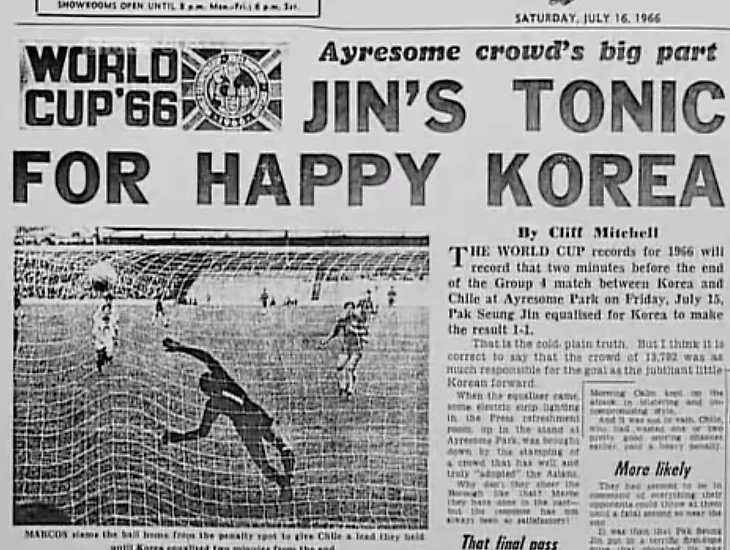 Путь корейцев на чемпионате казался недолгим – команда попала в группу 4 к сборным СССР, Италии и Чили. 12-го июля на стадионе «Эйрсом Парк» корейцы стартовали матчем против Советского Союза. Борьбы не получилось. Корейцы, средний рост которых был 165 см, проигрывали единоборства мощному сопернику и получили дубль от Эдуарда Малофеева, плюс гол Анатолия Банишевского. «Недостаточно крепки» - общий месседж газет наутро после игры.