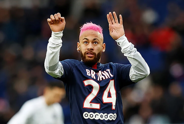 Новые розовые волосы и футболка Кобе задом наперед: разминка Неймара запомнится лучше очередного разгрома от «ПСЖ»