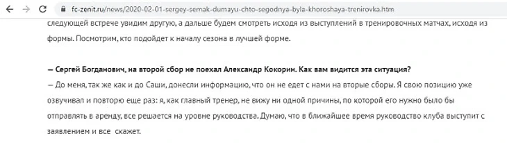 Ну и никто даже не рассматривает версию, что Кокорин мог сам где-то накосячить. Бухать во время набора формы/курить дурь и быть пойманным или вписаться в очередной блудняк, который просто не выплыл наружу. И т.д. Так-то Миллер за него впрягался и ждал его и анонсировал как усиление целых полгода. А тут в обход тренера решил слить. Чего он в жизни бы не сделал, не посоветовавшись с Семаком. Разве что какой-то дичайший форс-мажор, где мнение тренера не нужно, чтобы принять решение.