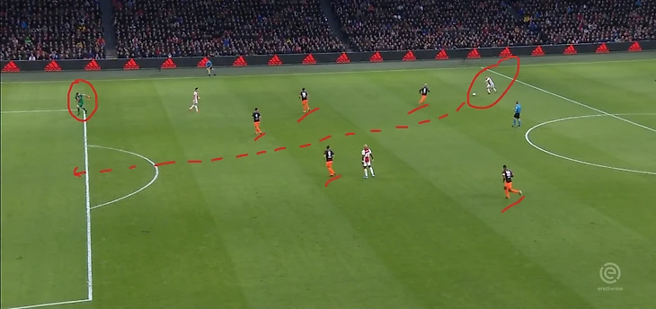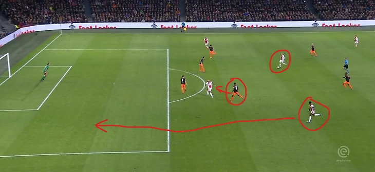 Лучше давайте еще поговорим о персоналиях, это всегда интересно. К примеру, разберем единственный гол “Аякса”, который забил их лучший бомбардир в этом сезоне - Промес (11 гол). Он в этом матче получил повреждение…