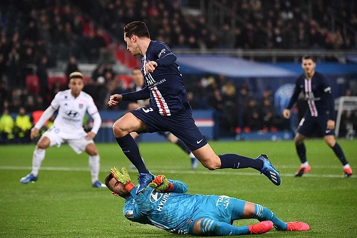Юлиан Дракслер на своей половине поля отдает передачу Килиану Мбаппе и мчит вперед. Француз уходит от Рафаэла и возвращает мяч партнеру – тот уже врывается в штрафную «Лиона».