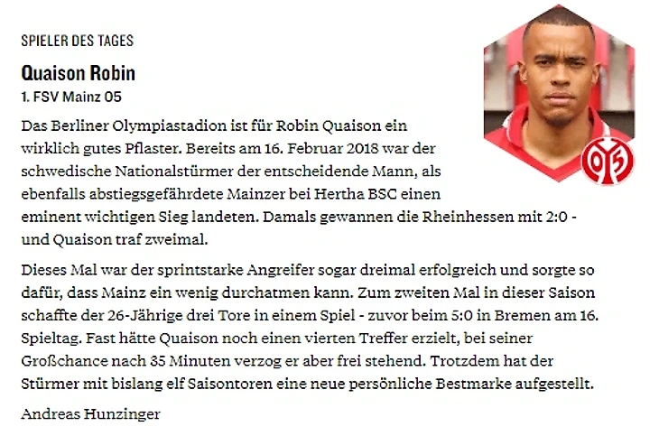 Робин Квайсон похоронил надежды «Герты» даже на ничью на родном «Олимпиаштадионе».
