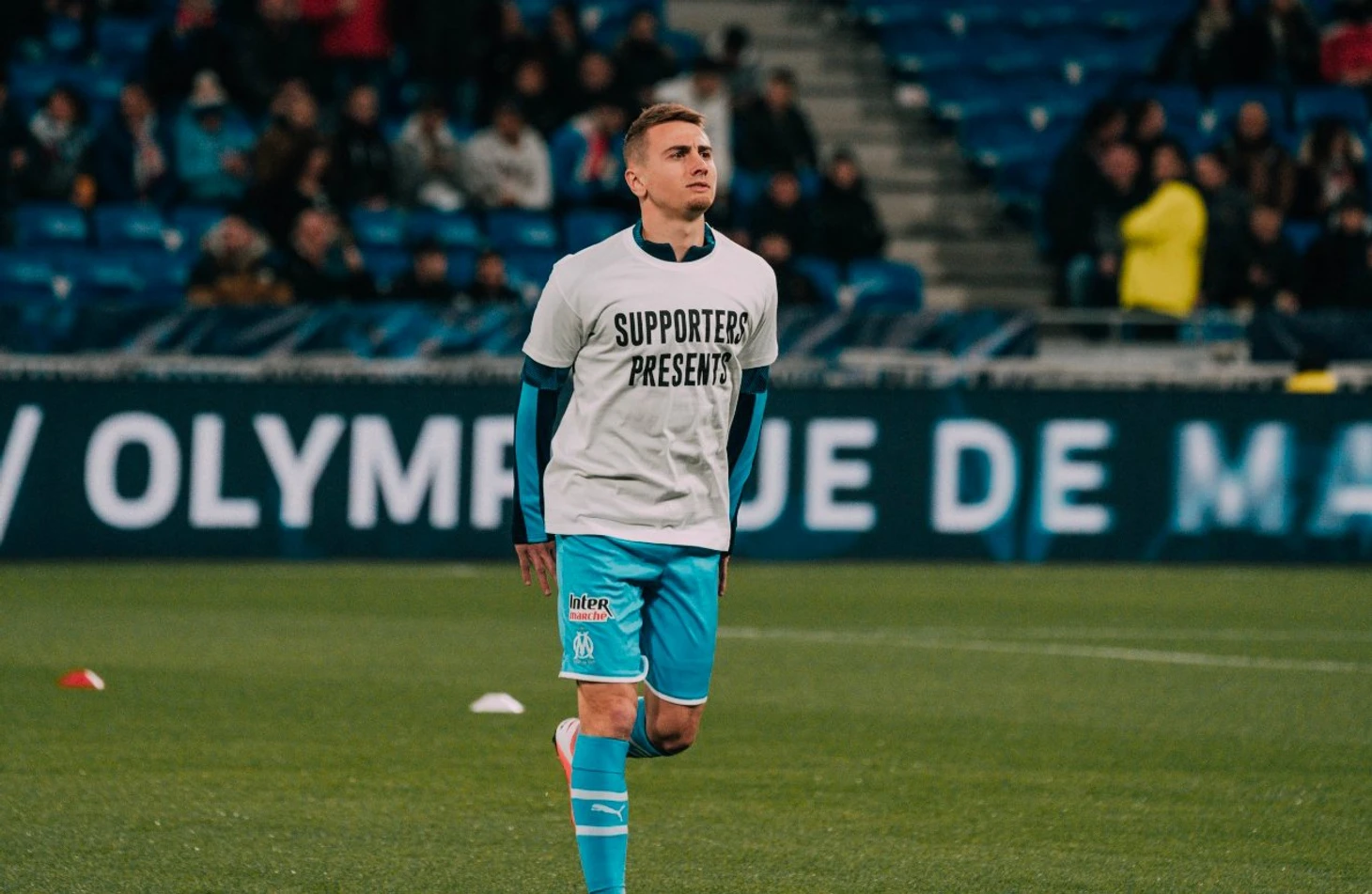 Однако футболисты «Марселя» не забывают своих. На предматчевую разминку они вышли в специальных футболках поверх формы со словами поддержки фанам.