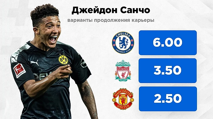 Букмекерские конторы почти одинаково оценивают кандидатуры "Барселоны" (17.0), "Реала" (17.0) и "Баварии" (19.0) в борьбе за игрока, но коэффициенты уже говорят о мизерности их шансов. На сегодняшний день нет серьезных сообщений о реальном интересе к Санчо со стороны этих клубов. Другое дело — АПЛ. Лучшая лига мира готова представить сразу три возможных пункта назначения для вингера "Боруссии".