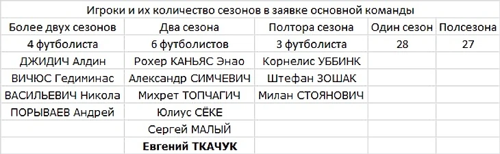 Итог. Пешич, Шкодра, Зенев – удачные приобретения. Барановский в целом сыграл средне. От Кизито и Режиналду ожидали большего, они раззабивались ближе к концу сезона. Видович ничем не впечатлил.