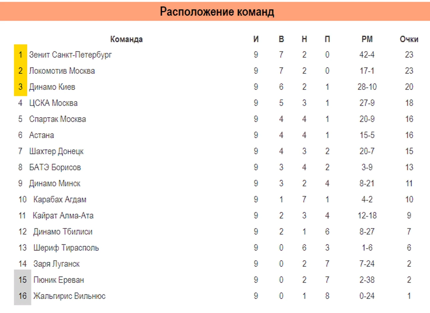 Турнирная таблица
