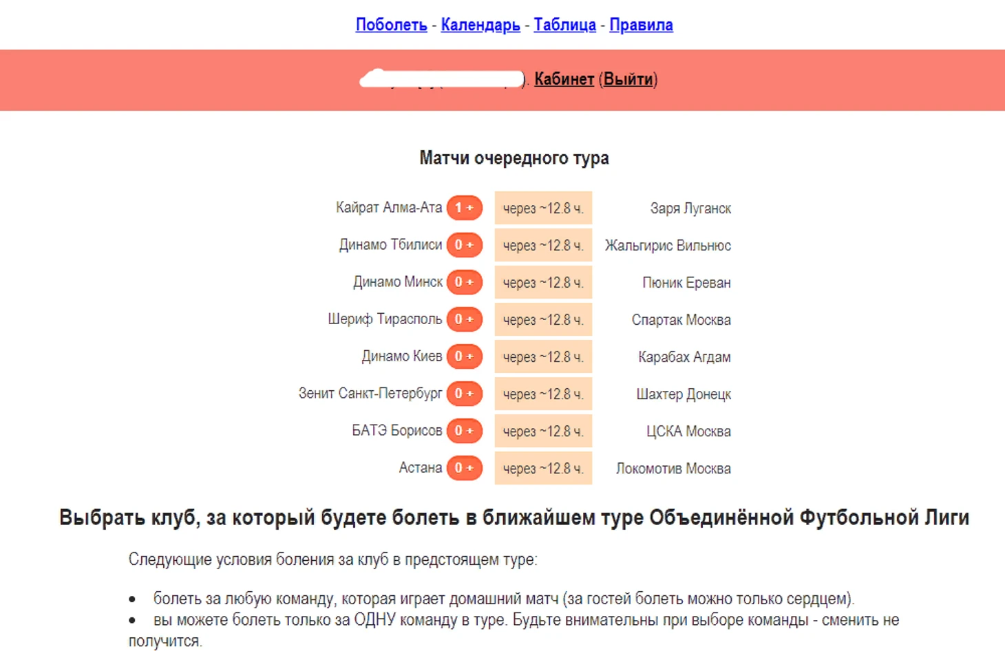 Попав на страницу голосования / боления, вы можете отдать свой голос за желаемый клуб, который играет дома. Пояснения есть ниже приведенных матчей тура. Вот картинка, как это выглядит:
