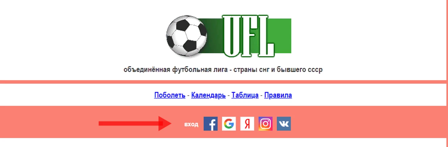 Перейдите на сайт проекта UFL.monster и зарегистрируйте, как указано на картинке (красная стрелка). После того, как зарегистрируетесь, повторно нажмите на выбранную соцсеть, чтобы войти в систему.