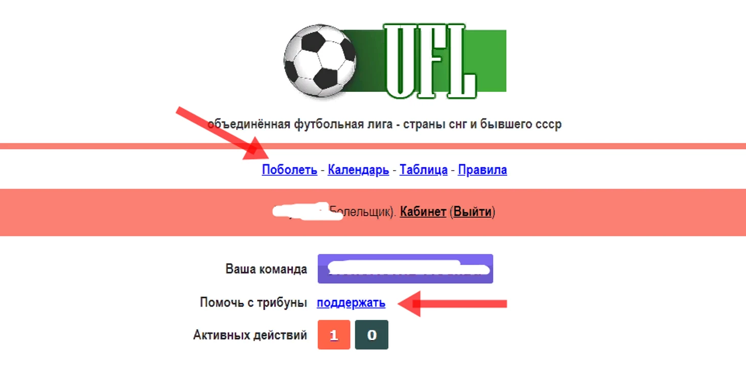 Далее вы должны выбрать ссылку "Поболеть", или из своего Кабинета ссылку "Поддержать", как показано на картинке.