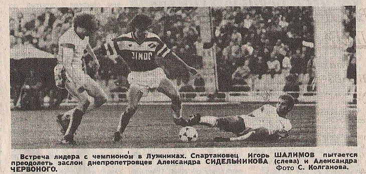 Высочайший градус борьбы в поединке «Спартак» - «Днепр» подтверждает предупреждение Юрия Кулиша, который сидел на скамейке запасных, так и не появившись на поле. Родионов забил свой 15 мяч и уверенно лидировал в споре бомбардиров, как и его родной «Спартак» в 52-ом чемпионате СССР: