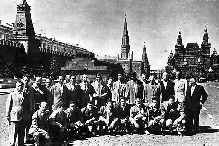 Каждому болельщику красно-чёрных известно, что «Милан» первым в Италии стал триумфатором Европы, победив «Бенфику» и футбольный гений Эйсебио на «Уэмбли» в 1963. А то, что клуб стал дебютантом с полуострова, прорвавшим пресловутый «железный занавес», знают немногие. Знаковое событие произошло летом 1955 года.