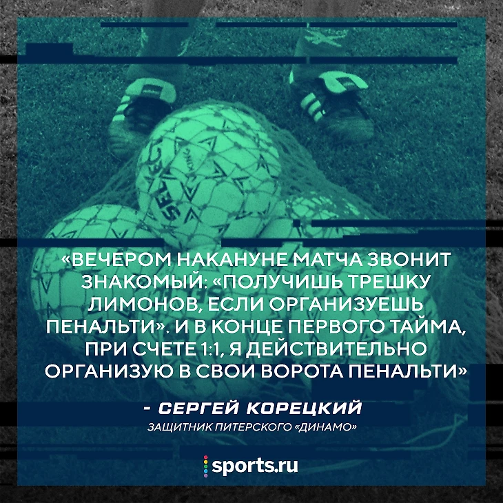 Позже Корецкий рассказал «Совспорту» детали: «Вечером накануне встречи с «Иристоном» мне звонит знакомый игрок. Говорит: «Получишь трешку лимонов, если организуешь пенальти». На разминке еще раз подходит, но я снова отказываюсь. И надо же такому случиться, что в конце первого тайма при счете 1:1 я действительно организую в свои ворота пенальти! Причем ситуация совершенно глупая: соперник прокидывает мимо меня мяч, я опаздываю с подкатом и получается, что прыгаю прямо ему в ноги. Со стороны действительно могло показаться, что я сделал это специально. Марк Абрамович меня сразу меняет, а после игры подходит тот самый знакомый из «Иристона» и спрашивает: «Деньги отдать?» То есть он тоже подумал, что все специально было сделано. Я не стал ничего говорить, развернулся и ушел».