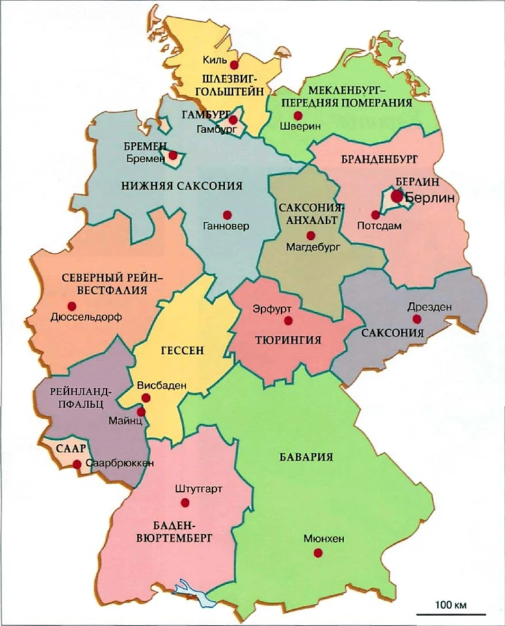 С 1990 года Германия состоит из 16 земель, обладающих частичным суверенитетом и объединенных в федерацию. Среди этих 16 субъектов федерации (так очевидно будет проще воспринимать русскоговорящему читателю) выделяют 13 федеральных земель, а также 3 свободных и ганзейских города – крупнейшие центры ФРГ – Берлин, Гамбург и Бремен.