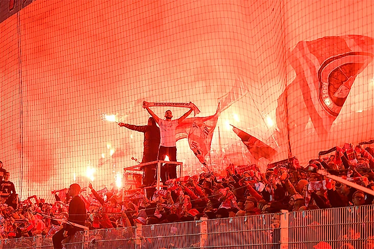 Во время дерби всегда можно насладиться великолепной культурой боления: красивые перфомансы, яркие файер-шоу и оглушительный гул трибун.