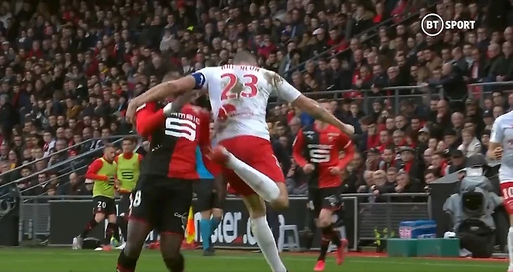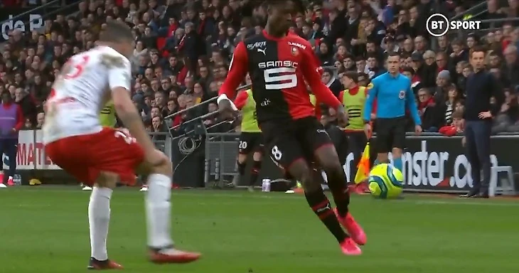 Мастер-класс показал Антони Бриансон в матче «Ренн» – «Ним» (2:1). Камавинга получил красивый пас пяткой, в касание пробросил мяч мимо защитника и рванул вперед. Рывок был недолгим – игрока скосила выставленная рука Бриансона.
