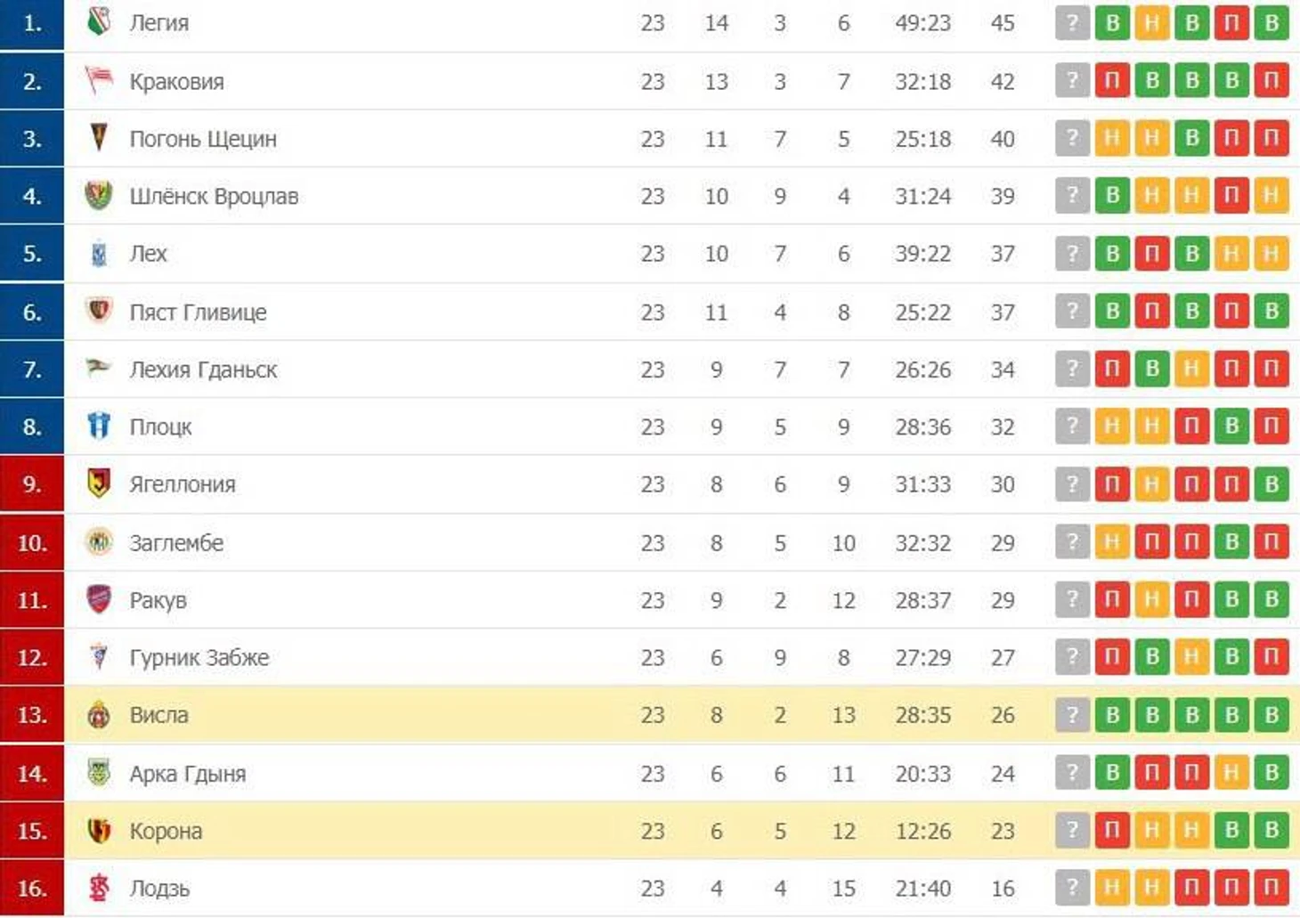 «Полосатые», которые до поединка в Гливицах имели одинаковое количество очков с «Легией», уступили 0:1 и теперь имеют три очка отставания от лидера. Самое интересное заключается в том, что в следующем туре краковчанам предстоит как раз битва в Варшаве с «армейцами».Если говорить о самом поединке, то в равной борьбе выстрел в упор от Себастьяна Милевского принёс три очка подопечным Вальдемара Форналика.