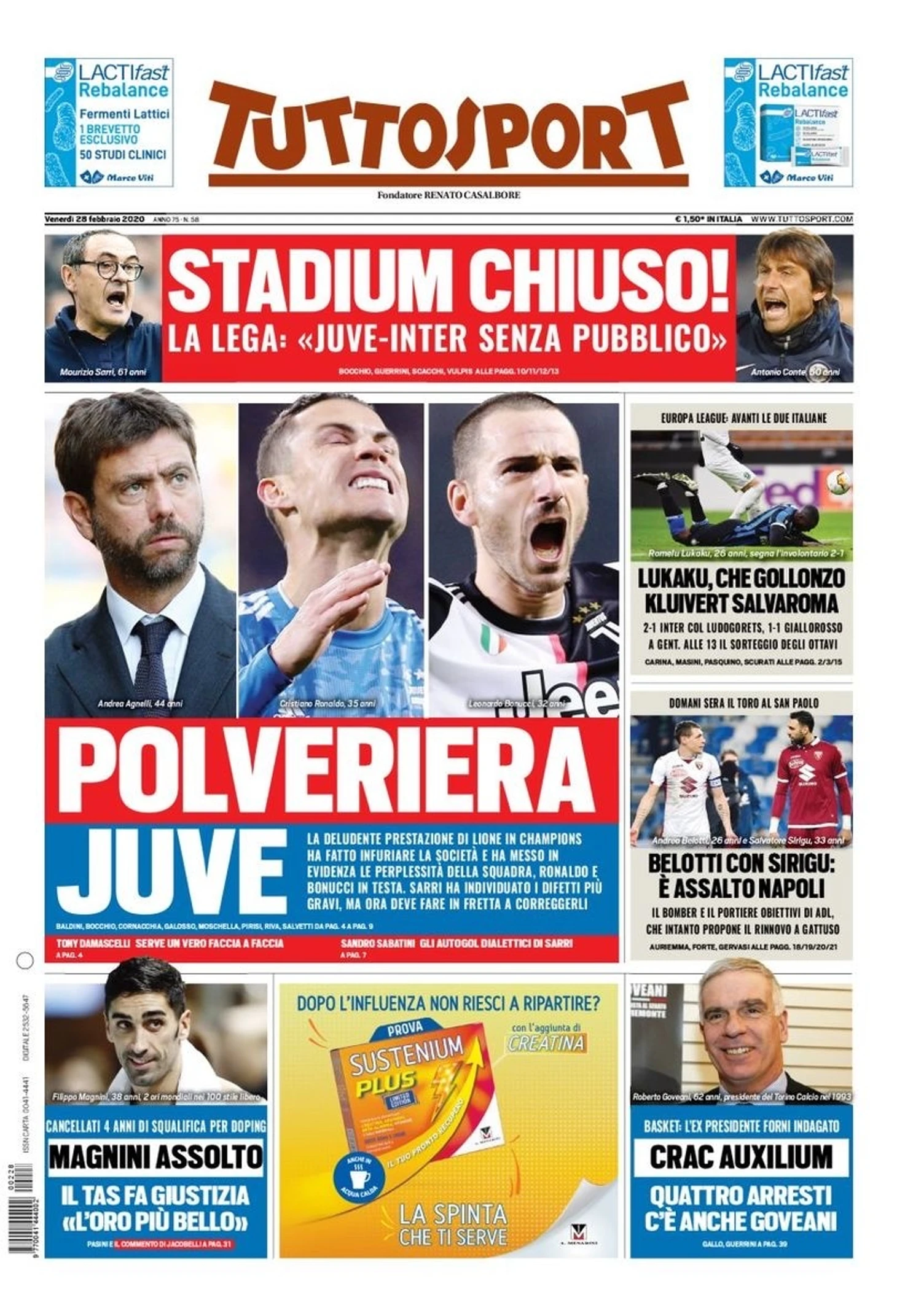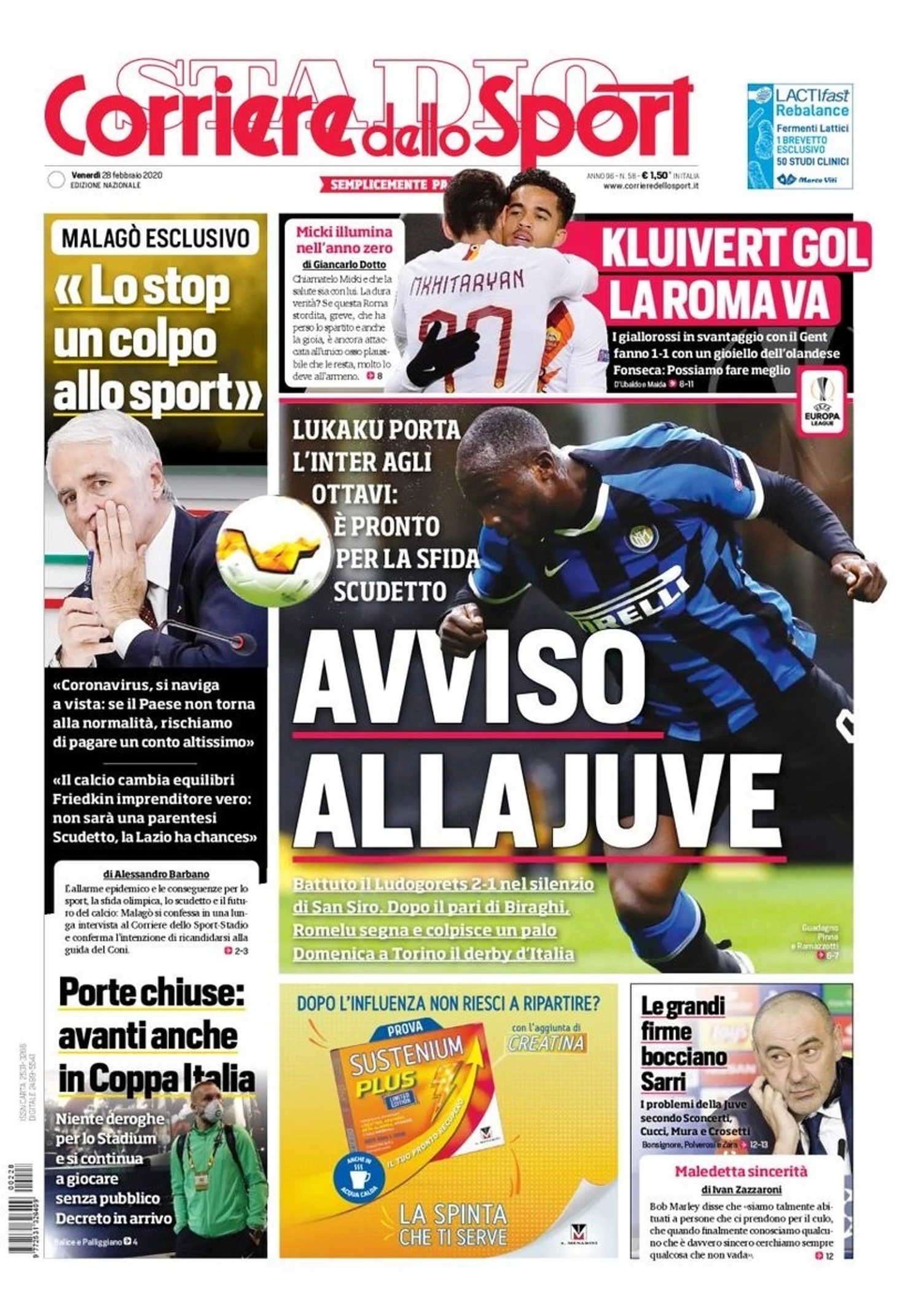 Решение играть матч «Ювентус»-«Интер» без зрителей, а также проход дальше в Лиге Европы «Интера» и «Ромы» – в утреннем обзоре заголовков итальянских спортивных изданий в блоге «В гостях у Кальчо».