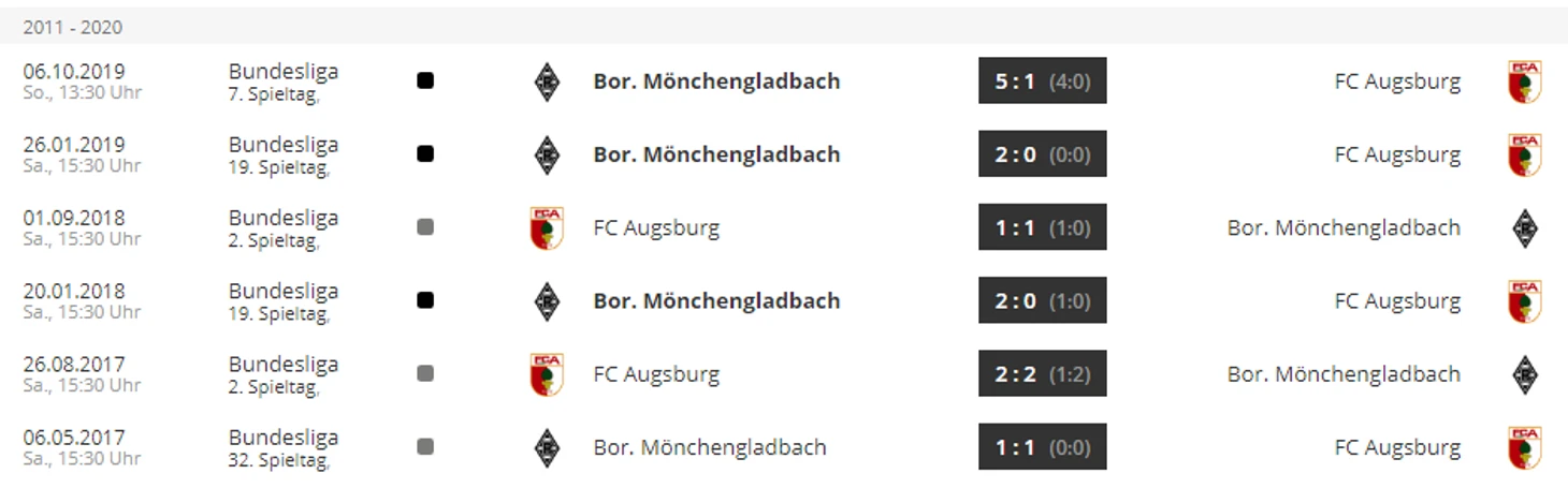 «Боруссия» Мёнхенгладбах не проигрывала «Аугсбургу» последние шесть игр в Бундеслиге, одержав три победы. В первом круге «Гладбах» обыграл соперника со счетом 5:1.