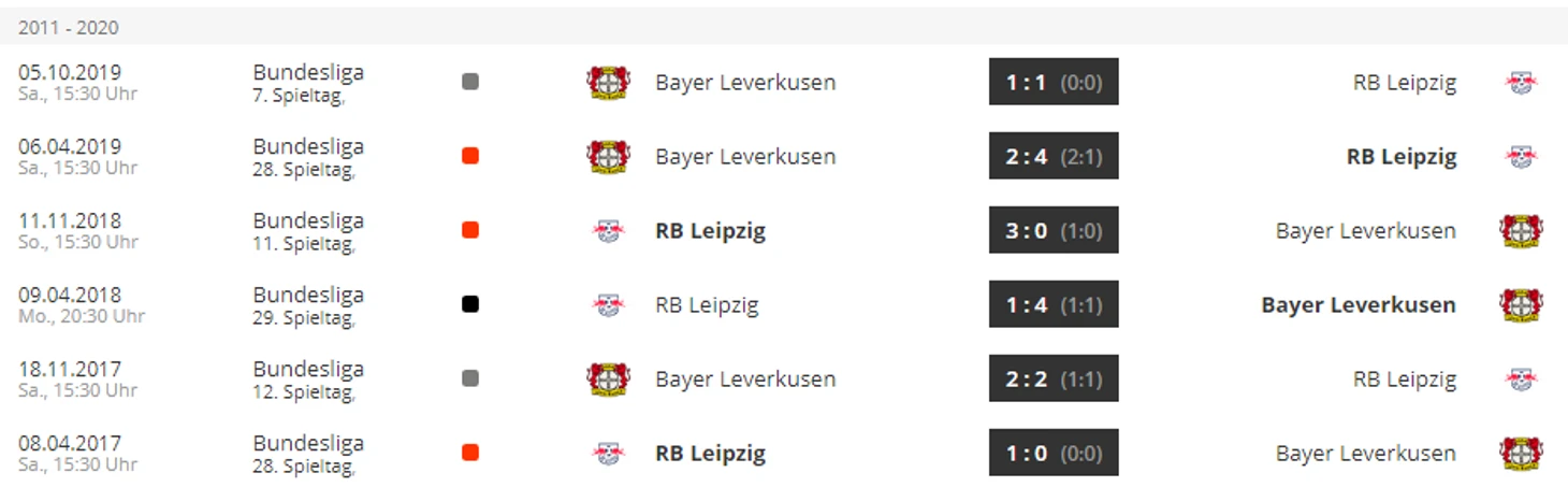 «Байер» имеет плохую статистику в личных встречах с «Лейпцигом»: семь матчей, четыре поражения и всего одна победа. Также в каждой игре, в среднем, «Байер» пропускает от «РБ» 2,1 мяча.