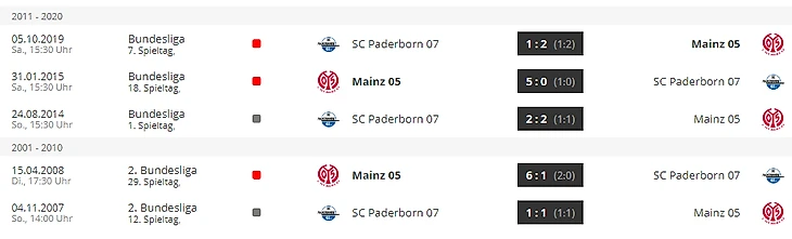 Падерборн гостил в Майнце всего дважды в истории и оба раза увез домой крупную победу – 5:0 в рамках первой Бундеслиги и 6:1 в рамках второй.