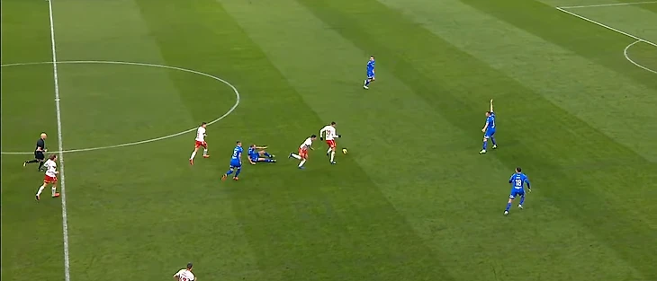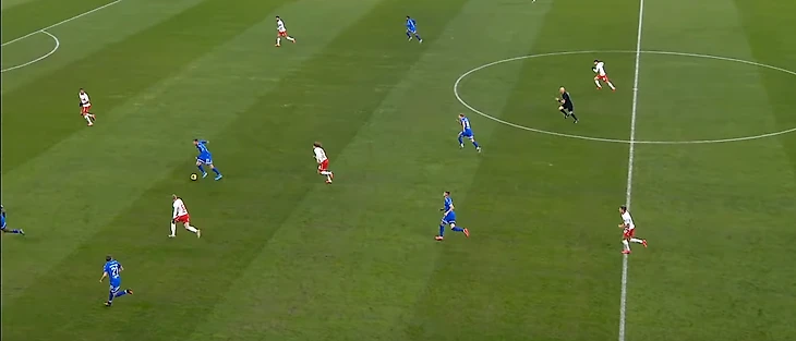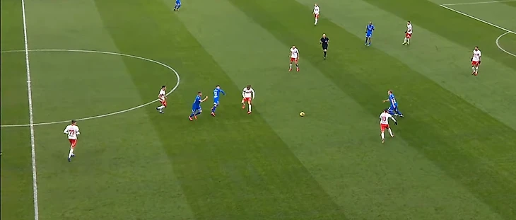 Зобнин обыгрывается сначала с Рассказовым, затем с Бакаевым, защита практически никак этому не препятствует. За спиной Нойштедтера, огромная, свободная никем не контролируемая зона, в которую в итоге смещается Зобнин и забивает гол.