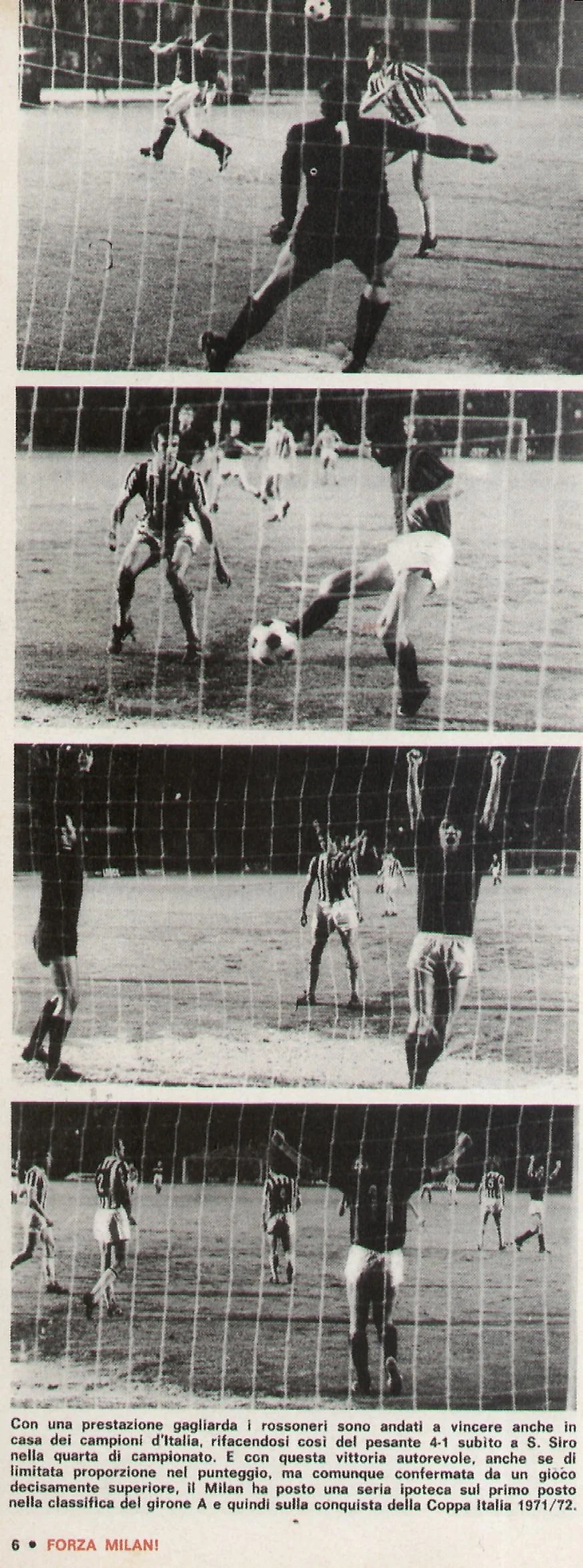 Бомбардиры красно-чёрных в Кубке Италии 71/72 гг.. : 4— Прати , 3— Бигон , 2— Ривера , 1— Бенетти , Сабадини , Росато , 2 — автоголы противников.