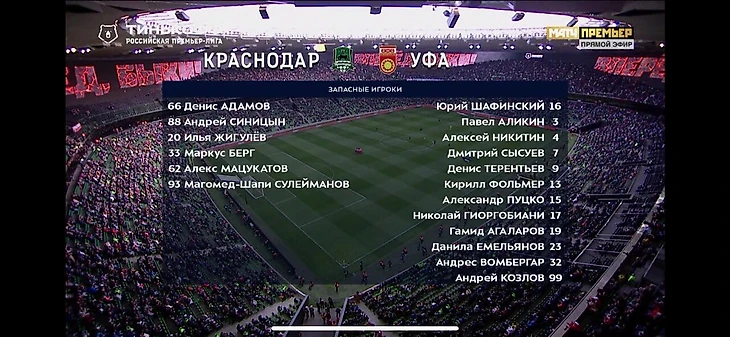 В итоге скамейка была насыщена воспитанниками «Краснодара», а «Матч ТВ» даже не всех включил в графику. Теперь им сложнее будет похвастаться перед друзьями.