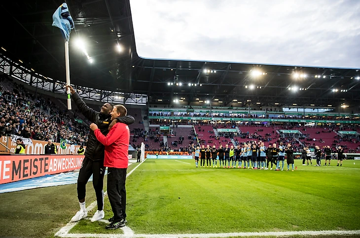 Маркус Тюрам празднует победы с угловым флажком. Агроном «Аугсбурга» чуть не обломал ему весь кайф