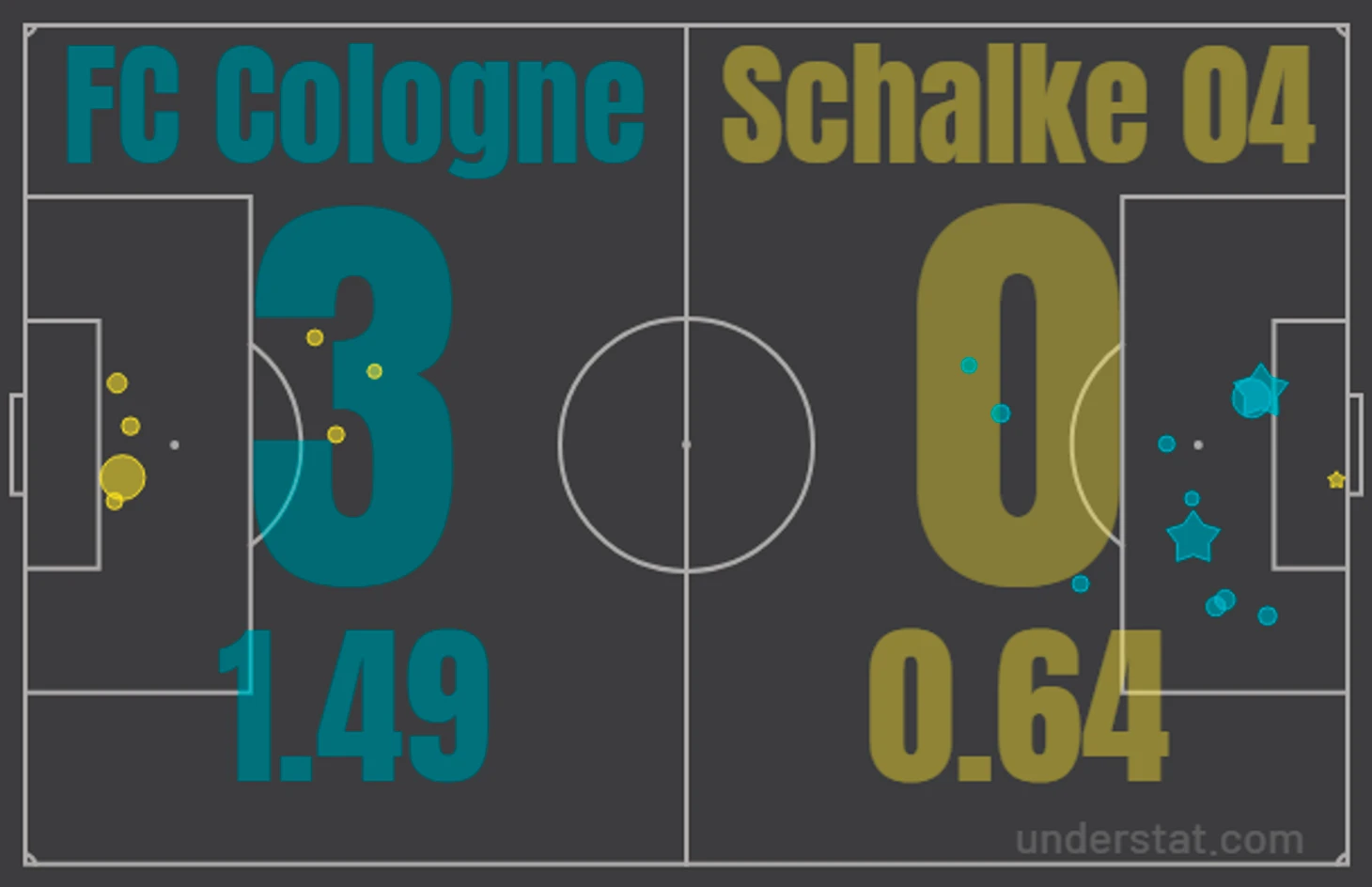 После паузы гости показывали гораздо больше настроя, но остающиеся ошибки и отсутствие креатива не позволили «Шальке» превратить своё желание в результат. И по итогу на 75-й минуте они пропустили ещё один после плохих действий в обороне и ошибки Нюбеля, который и пустил мяч в собственные ворота. «Кёльн» продолжил следовать заданному положительному тренду — очень вовремя, ведь через полторы недели им предстоит сыграть отложенное из-за урагана дерби против «Гладбаха». А «Шальке» здорово повезло, что и «Вольфсбуг», и «Хоффенхайм», и «Фрайбург» очки потеряли, позволив оставаться клубу из Гельзенкирхена в зоне еврокубков.