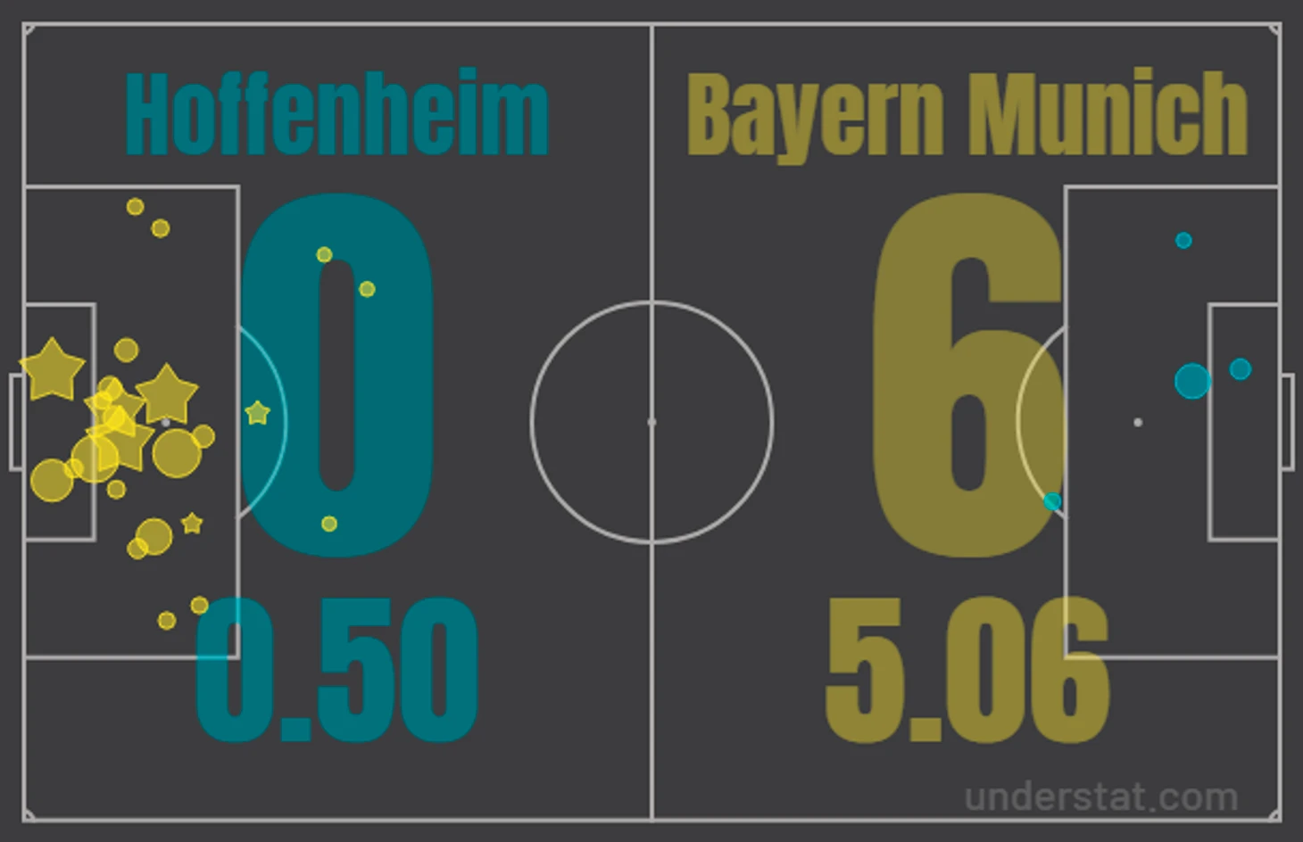 «Хоффенхайм» допускал ошибки в защите и позволял «Баварии» делать на поле всё, что им вздумается. На 33-й минуте односторонняя игра закономерна привела и к четвёртому голу гостей. Вновь поучаствовал Зиркзее, а забил на сей раз Коутиньо. А сразу после перерыва бразилец оформил и дубль. На 62-й минуте Горецка забил шестой мяч в ворота и без того разбитого «Хоффенхайма», и это было одно из последних игровых действий в этом матче. Начиная с 67-й минуты сама игра, которую «Бавария» выиграла по всем возможным показателям, отошла на второй план. Заканчивался матч и вовсе совместным протестом обеих команд против действий ультрас: игроки перепасовывали мяч без каких-либо дальнейших действий.