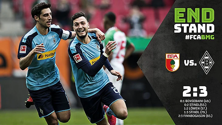 А вот во втором тайме уже на 49-й минуте вратарь «Аугсбурга» вышел из ворота, дав возможность Бенсебайни забить с короткой дистанции с передачи Штиндля. И уже на 53-й минуте голом отметился и сам капитан «Гладбаха» с передачи Плеа, который вышел на поле только в начале второй половины матча и поучаствовал в создании и одного, и другого голевых моментов. Игра начала двигаться на бешеной скорости, и уже на 57-й минуте «Аугсбург» тоже забил силами Лёвена с помощью Фрамбергера.