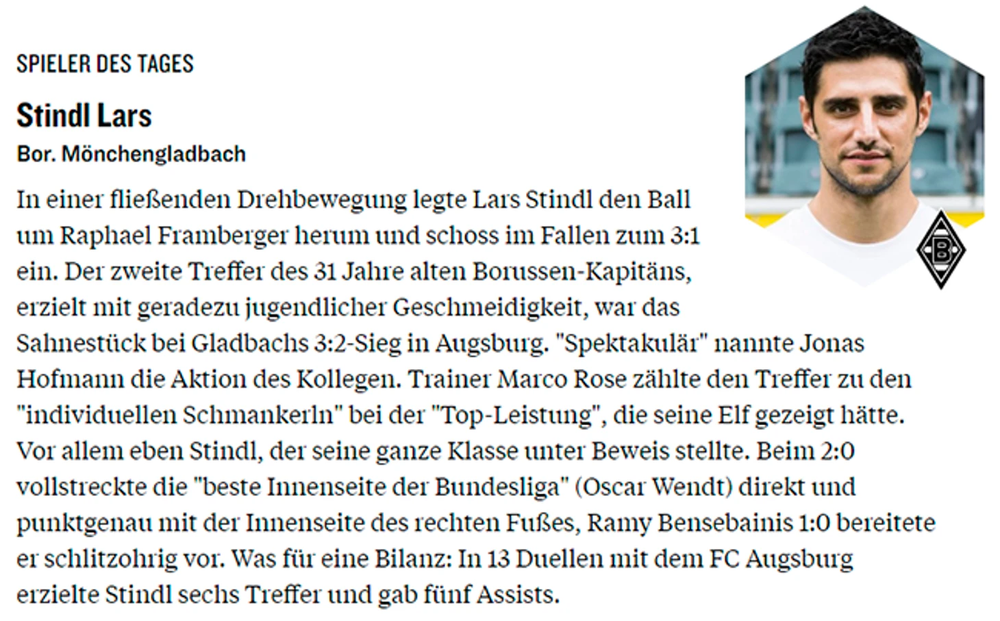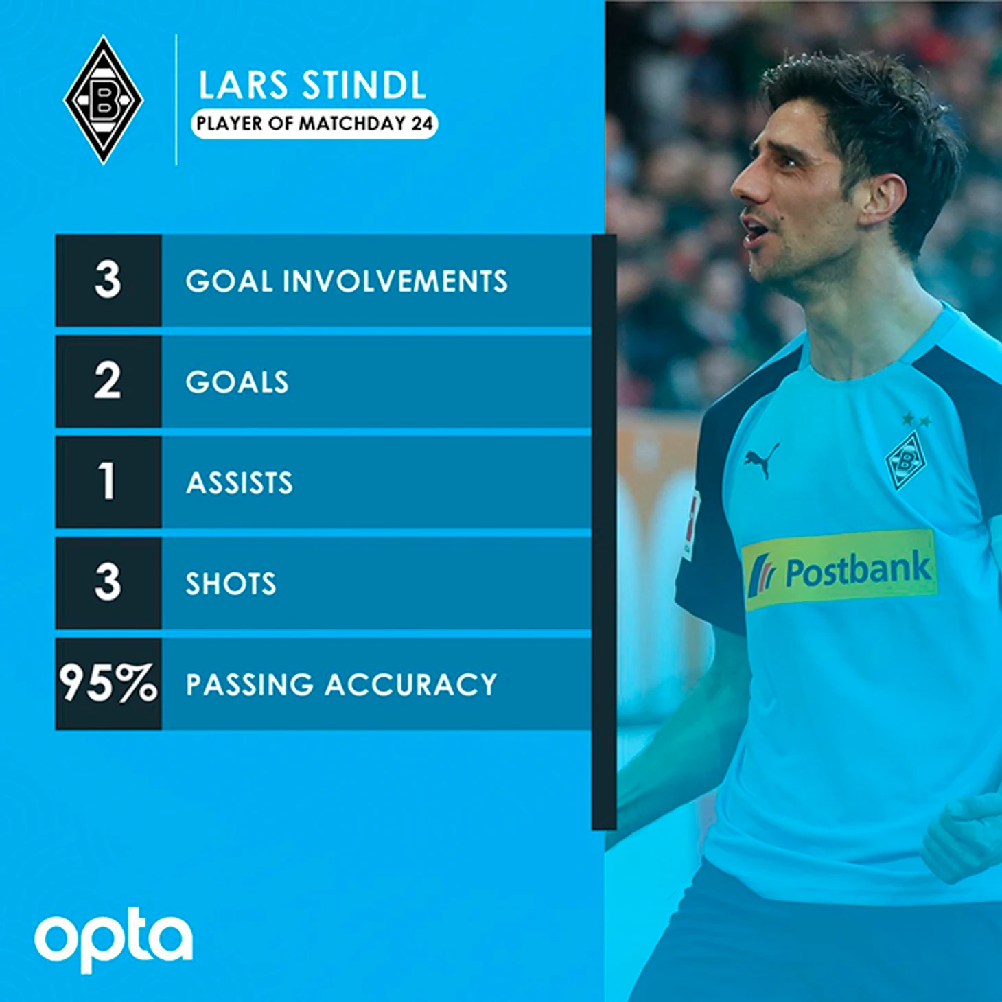 Ларс Штиндль был вовлечен в пяти голах (четыре ассиста и один гол) в последних двух выездных матчах «Боруссии». До этого в шестнадцати играх на выезде у него результативных действий не было.