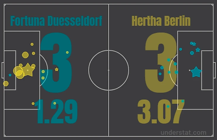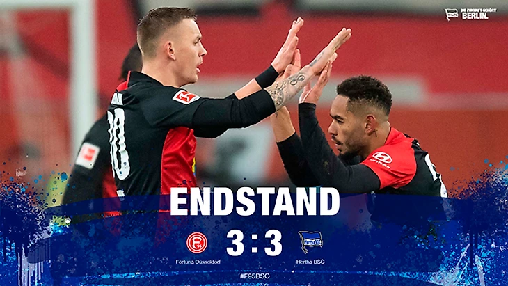 В течение следующих десяти минут сначала с контратаки свой первый гол за столичный клуб забил Кунья, а затем своим первым забитым мячом в Бундеслиге отметился Пёнтек, который сам заработал пенальти и сам же реализовал спустя целый тайм попыток всё-таки попасть по воротам. До конца матча обе команды показывали намерение закончить игру в свою пользу, обменявшись ещё несколькими моментами, но счёт более не изменился. И по итогу остаётся два в равных степени громких заголовка: «Фортуна» упускает победу, ведя в счёте 3:0» и «Герта» вырывает очко, проигрывая после первого тайма 0:3».