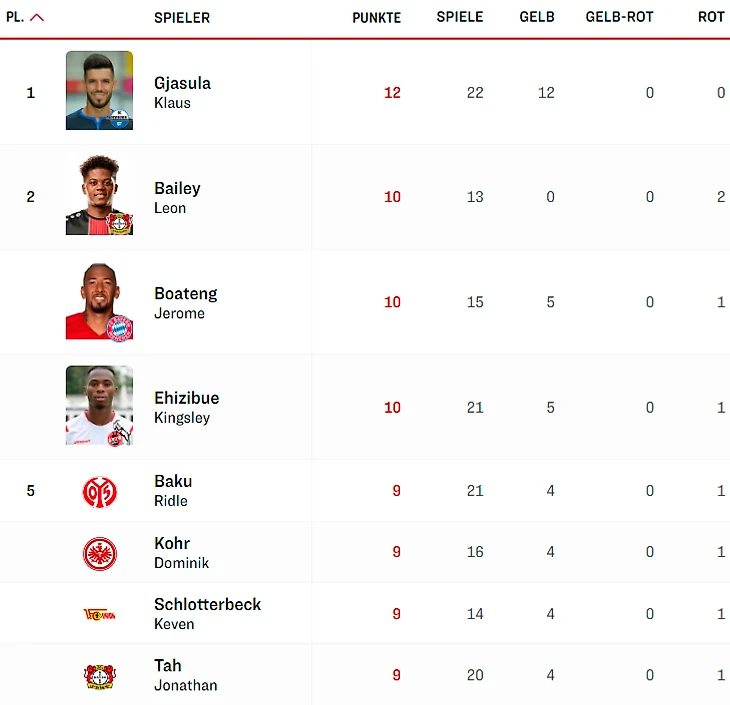 Клаус Гьязула заработал двенадцатую желтую карточку в сезоне, больше чем кто-либо другой.