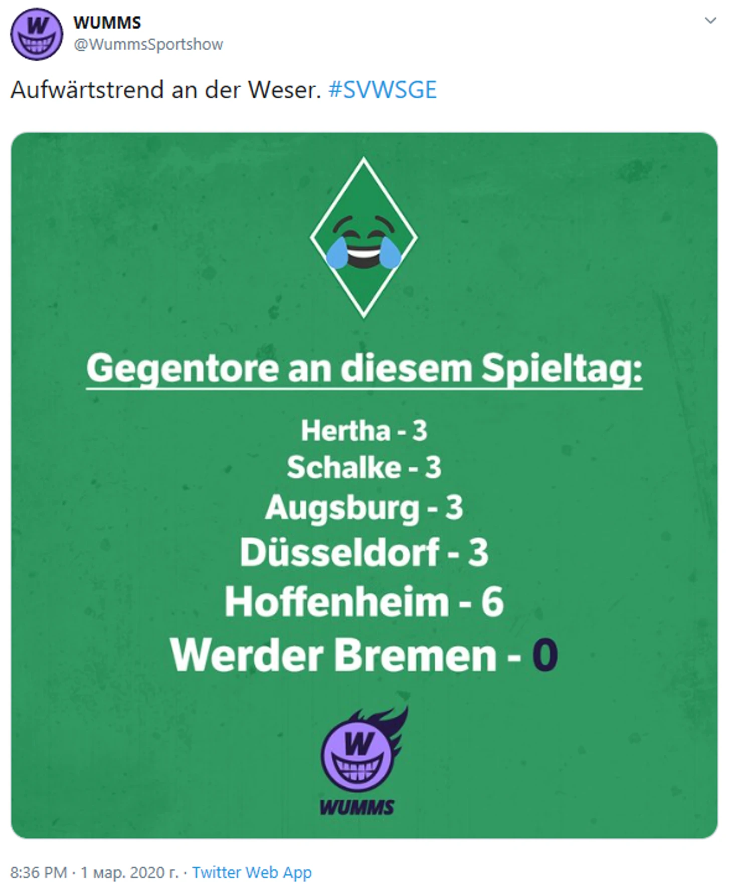 Прогресс на Везере. Пропущенные мячи «Вердера» в этом туре – 0.
