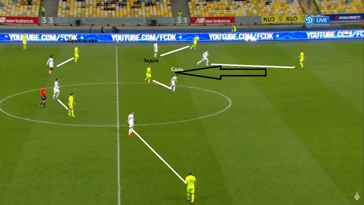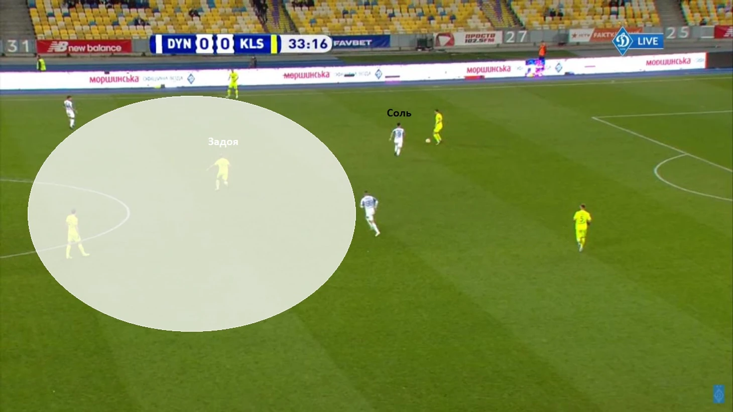 Очень часто причиной провала прессинга Динамо был Фран Соль, однако нельзя не отметить центрального полузащитника Колоса Задоя который отлично открывался за первой линией киевлян.