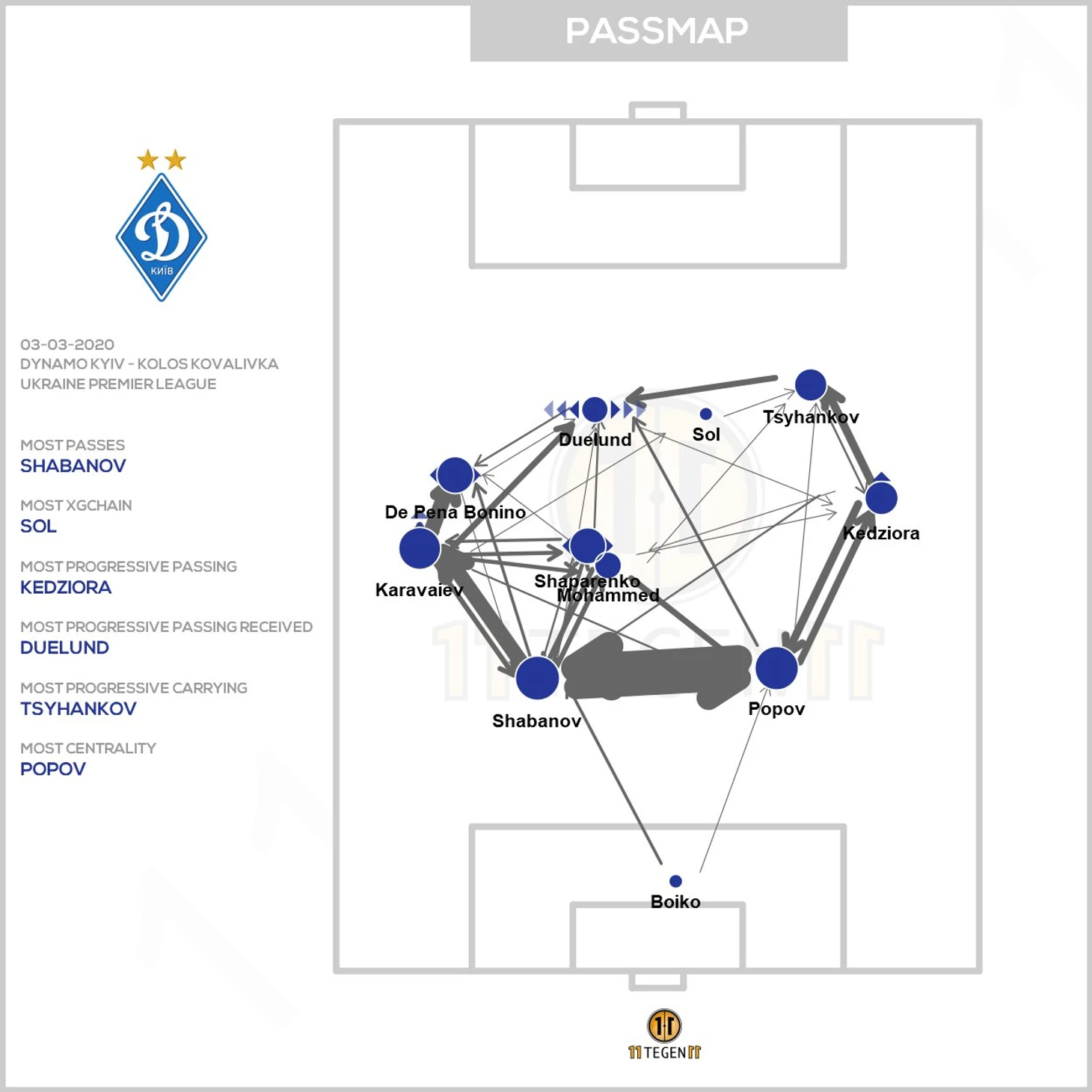 Карта передач Динамо. Дуэлунд сильно выделяется.