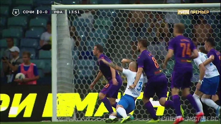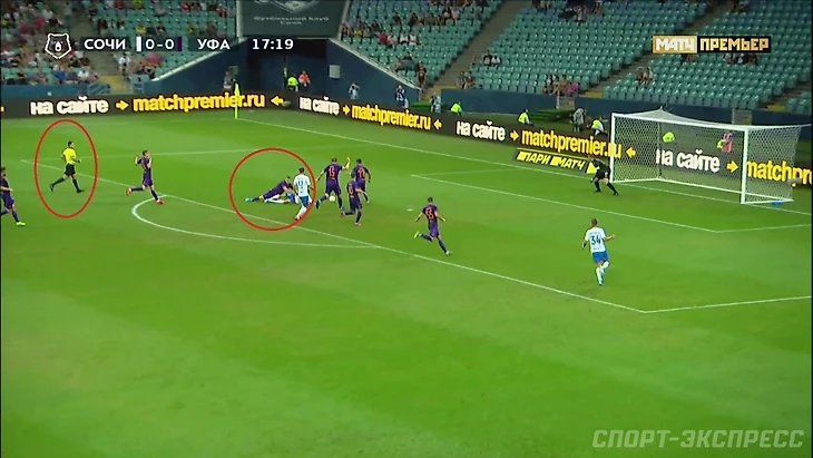 Позднее помощник Сухого ошибочно зафиксировал офсайд у Полоза, а сам Сухой тут же проглядел еще один фол уфимцев в своей штрафной: