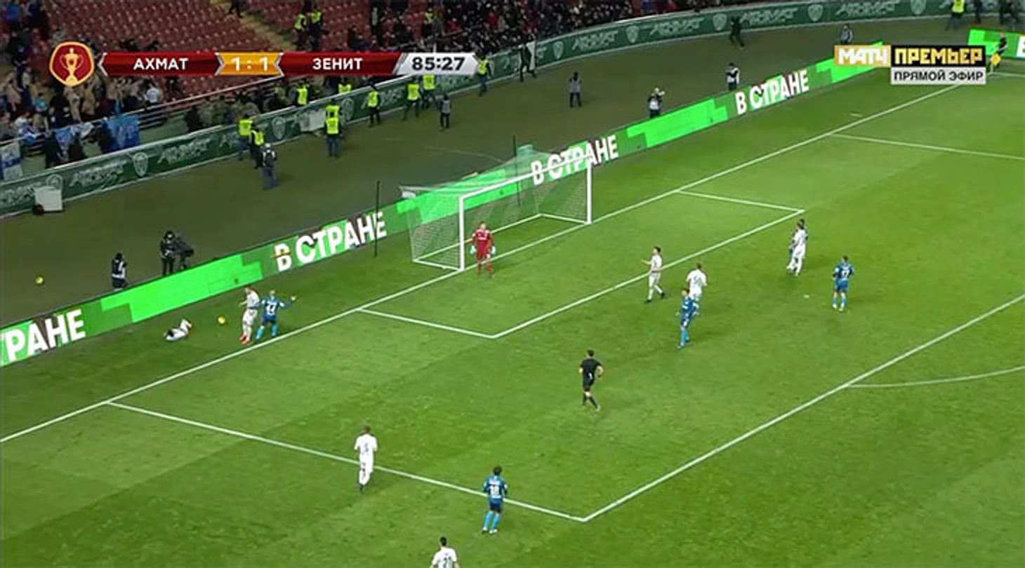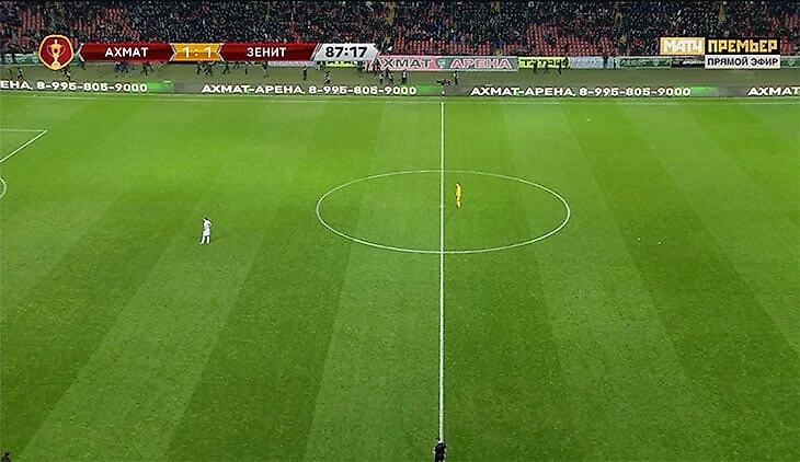 Через две минуты часть грозненской публики рванула в обратном направлении – их порциями было видно с основной камеры, которая показывала пустой центр поля.