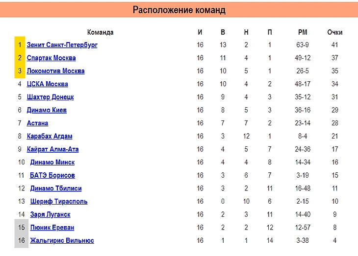 16-й тур. Результаты Объединённой Футбольной Лиги