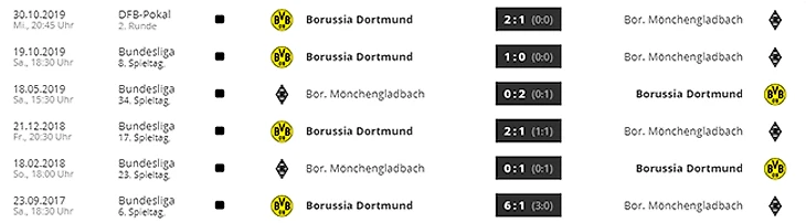 • «Дортмунд» выиграл каждый из последних девяти матчей в Бундеслиге против «Гладбаха», а также одержал победу над ними в этом сезоне и в рамках Кубка Германии осенью. Это самая долгая из текущих победных серий «Дортмунда» против любой команды Бундеслиги.