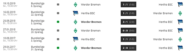 • К настоящему моменту эти клубы встречались 69 раз в Бундеслиге, и их матчи никогда не заканчивались ничьёй со счётом 0:0. Это самая долгая из таких серий в лиге.