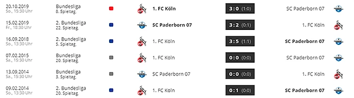 • «Кёльн» непобедим в последних трёх встречах против «Падерборна» в Бундеслиге (одна победа, две ничьи).