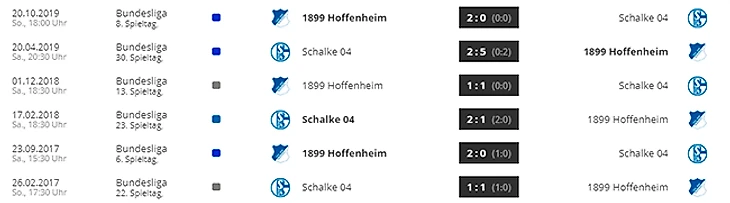 • «Хоффенхайм» проиграл только одну из своих последних семи встреч в Бундеслиге против «Шальке», тот проигрыш был в феврале 2018 года. В прошлом сезоне матч на «Фельтинс-Арене» они выиграли со счётом 5:2.