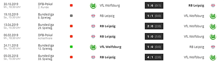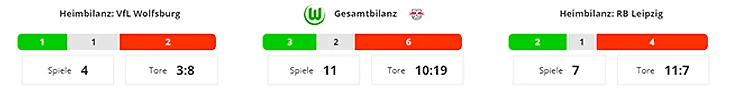 • «Лейпциг» непобедим уже четыре свои встречи во всех турнирах против «Вольфсбурга» (три победы, одна ничья) и ещё ни разу не пропускал больше, чем один гол, за свои четыре матча на «Фольксваген-Арене».